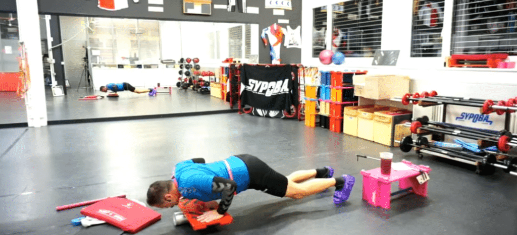 Das Element Gym gehört zu den horizontalen Elementen und bietet eine Kombination von statischen als auch dynamischen Bewegungen der oberen und unteren Extremitäten. Die Übungen stammen aus den unterschiedlichen Elementen vom Basic bis Progressiv. Das Spezielle an diesem Element sind die zwei Unterlagen (Rolle Board & Slide), welche gleichzeitig kombiniert werden und dadurch entstehen unglaubliche Effekte daraus! In Betracht aller Punkte bietet das Element Gym alles was das Herz in Sachen Physis bietet – von der Stabilität über die Kraft weiter zur Kraftausdauer bis hin zur totalen Widerstandsfähigkeit und mentalen Stärke. Danke den Werkzeugen sind die Variationen ohne Ende aber das kennen wir ja bei vielen SYPOBA® Elementen! |